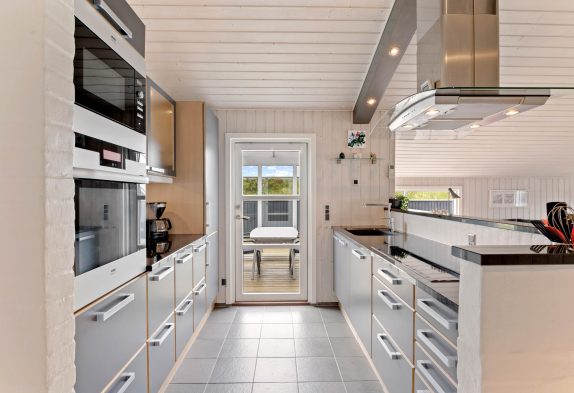 Die freistehende Küche unterteilt den großen Wohnraum in Ess- und Wohnbereich und ist von beiden Seiten offen. So könnt ihr kochen und seid trotzdem mitten im Geschehen. Die mit modernen Geräten ausgestattete Küche verfügt selbstverständlich auch über einen Geschirrspüler, der gerne den Abwasch für euch übernimmt. Somit bleibt mehr Zeit für die schönen Dinge des Urlaubs. Wie wäre es z. B. mit einem ausgiebigen Saunagang? Hier könnt ihr entspannen und den Alltagsstress vergessen.