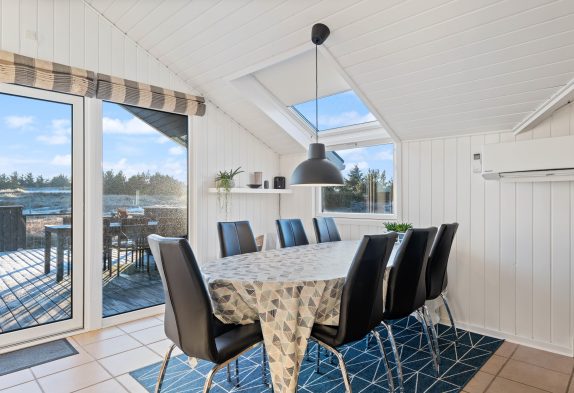 Das Ferienhaus ist hell und stilvoll eingerichtet. Durch die großen Fenster im Wohnbereich habt ihr nicht nur einen tollen Blick auf die Landschaft, sondern auch direkten Zugang zur Terrasse. An kühleren Tagen und nach einem erlebnisreichen Urlaubstag könnt ihr es euch auf dem Sofa gemütlich machen und gemeinsam einen Film schauen während neben euch das Feuer des Kamins knistert und lodert. Über den Fernseher empfangt ihr deutsches Fernsehen via Satellit. Die offene Küche ist funktionell und hat alles, war ihr braucht, um euch leckere Mahlzeiten zu zaubern. Es gibt auch einen Geschirrspüler, der euch den lästigen Abwasch erspart und mehr gemeinsame Zeit verschafft. Die gewonnene Zeit könnt ihr dann für einen lustigen Spieleabend an dem großen Esstisch nutzen. Die moderne und energiesparende Luft-zu-Luft Wärmepumpe sorgt das ganz Jahr über für angenehme Temperaturen. Zur weiteren Ausstattung gehört gratis Internet.