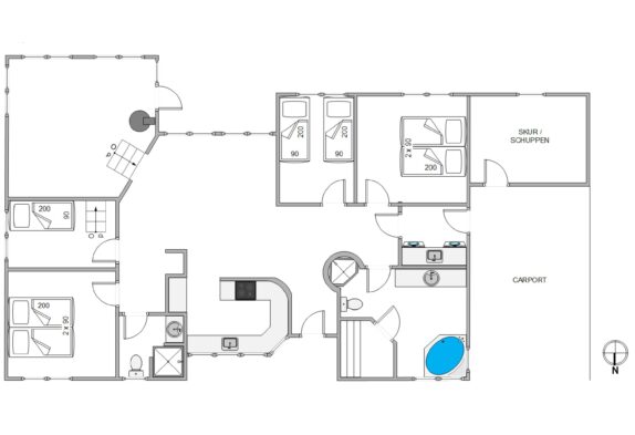 Ein sehr schönes Sommerhaus, aus Stein und bestem Material gebaut. Es ist im klassischen und zeitlosen Stil hübsch möbliert. Vom abgesenkten Wohnzimmer aus habt Ihr einen beeindruckenden Ausblick auf den Ringkøbing Fjord.