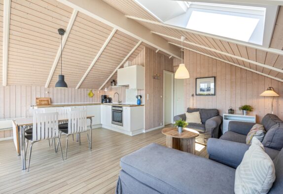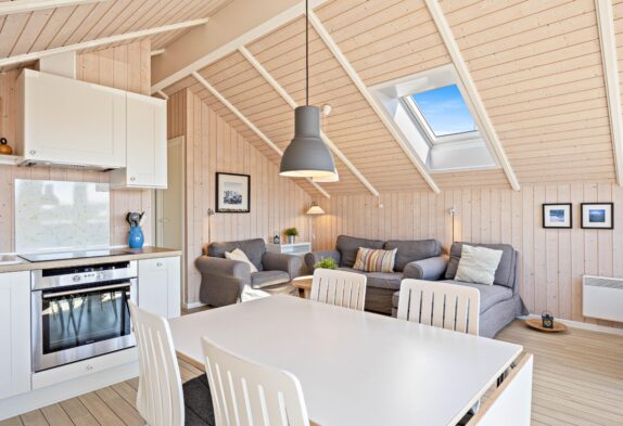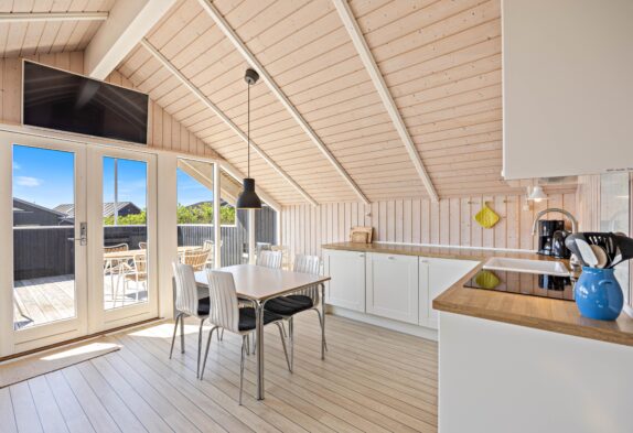 Da die Terrasse auch teilweise überdacht ist, könnt Ihr auch draußen sitzten, falls das Wetter mal nicht mitspielt. Da das Zentrum in Søndervig nur 200 Meter vom Haus entfernt ist, kann man abends auch mal gut außerhalb Essen gehen, ohne das Auto starten zu müssen.
