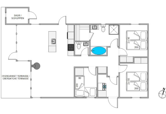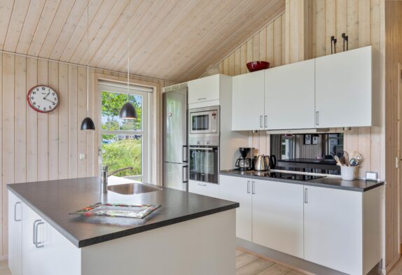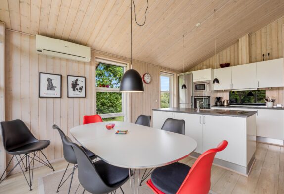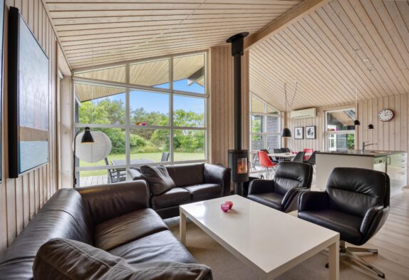 Ein hervorragendes Ferienhaus mit schöner und geschmackvoller Einrichtung. Die Küche ist offen mit dem hellen und einladenden Wohnzimmer verbunden, von wo aus Ihr Zugang zur großen, teilweise überdachten Terrasse habt. Das Haus liegt auf einem natürlich abgeschirmten Grundstück.
