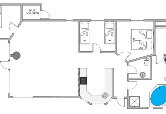 In der offenen Küche findet ihr eine gute Ausstattung vor, die zum Zubereiten leckerer Mahlzeiten einlädt. Im Badezimmer befinden sich Whirlpool und Sauna, die euch zu entspannten Momenten einladen. Dank der Fußbodenheizung bekommt ihr hier auch keine kalten Füße. Damit ihr euch besser aufteilen könnt, gibt es zudem eine extra Gästetoilette.