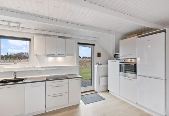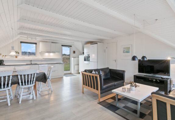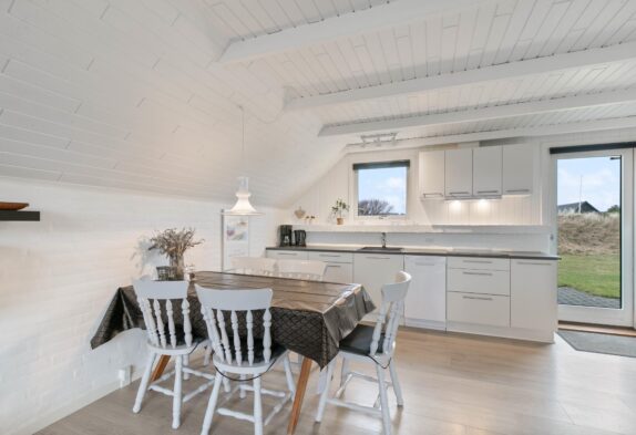 Gemütliches Ferienhaus am Ende einer ruhigen Sackgasse in Søndervig. Das Haus ist modern möbliert und überall weiß gestrichen. Geschirrspüler, Flachbildschirm-TV, gratis Internet mit WLAN-Zugang und eine energiesparende Wärmepumpe sind im Haus vorhanden. Tiere sind im Haus willkommen.