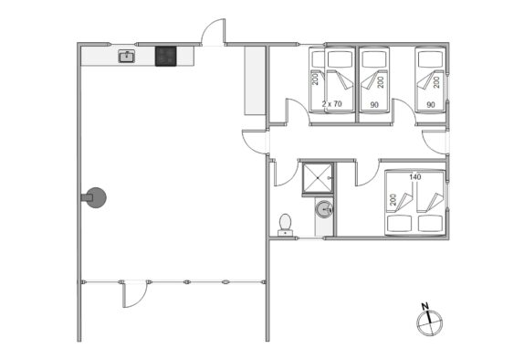 Die Küche ist u.a. mit 90l-Gefrierschrank und Mikrowellenherd ausgestattet. Die Küche und Wohnzimmer sind offen verbunden und verfügen Laminatholzfußboden. Alle Schlafzimmer sind auch mit Laminatholzfußboden. Den Kaminofen sieht man von überall in dem sehr gemütlichen Raum. Darüber hinaus stehen DVD-Spieler und Radio mit CD-Spieler und Anschluß für Ipods und Smartphones zur Verfügung. Im Essbereich gibt es einen Ausgang zur Nordterrasse und vom Wohnzimmer gelangt man direkt auf die Südterrasse.