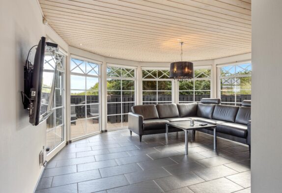 Zu diesem Ferienhaus gehört eine schöne Terrasse, die geschlossen ist, damit Kinder und Hund sich hier sicher und frei bewegen können. Die Architektur des Ferienhauses macht es möglich, immer eine Windgeschüzte Stelle zu finden, an der Ihr den ganzen Tag die Sonne, die Seeluft und die schöne Aussicht genießen könnt. Und wenn Ihr von dem Strandbesuch zurückkommt, könnt Ihr den Sand unter der Aussendusche, die auf der Terrasse vorhanden ist, abspühlen. Søndervigs Zentrum liegt etwa 1,5km von dem Haus entfernt; hier gibt es schöne Restaurants und Einkaufsmöglichkeiten. Nur 4km vom den Haus liegt der Golfplatz mit 27 Löchern; er hat das ganze Jahr auf. Von dem Haus sind es etwa 11km nach Hvide Sande oder nach Ringkøbing.