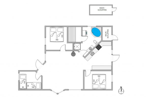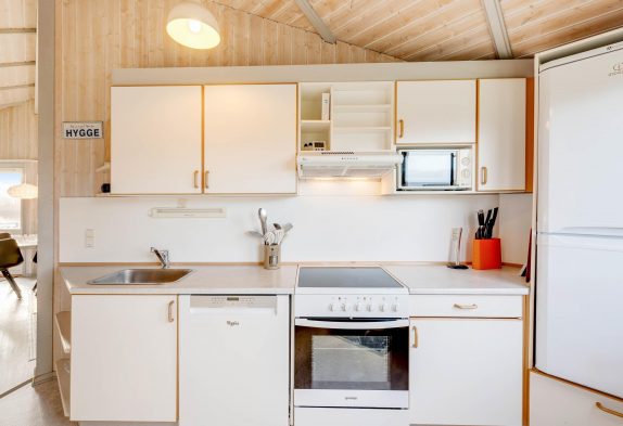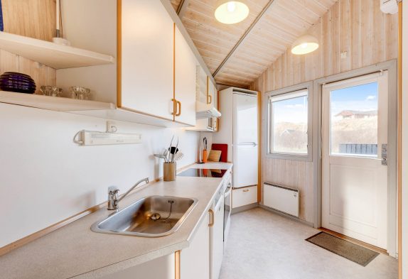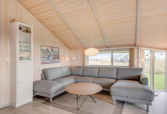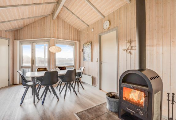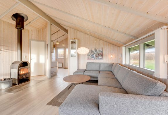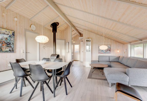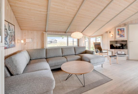 Ein schönes Ferienhaus mit heller und einladender Einrichtung. Mit 3 guten Schlafzimmern, 2 mit Doppelbetten und das letzte mit Einzelbetten. Schönes Badezimmer mit Fußbodenheizung, Sauna und Whirlpool – ideal um nach einem langen Tag am Strand oder nach einer langen Wandertour in der schönen Natur zu entspannen. Macht Feuer im Kaminofen, damit sich die angenehme Wärme im Herzen des Hauses verteilen kann, wo das Wohnzimmer, der Essbereich und die Küche offen miteinander verbunden sind. Dieses Ferienhaus schafft einen guten Rahmen für gelungene Ferien.