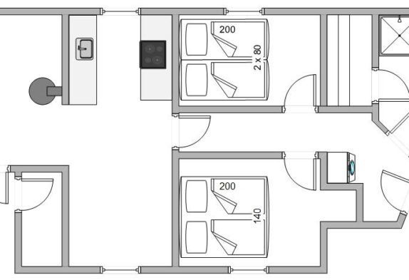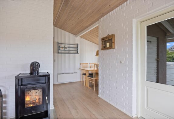 Folgt ihr dem Flur befindet sich das Schlafzimmer mit Doppelbett zur linken, das Schlafzimmer mit den 2 Einzelbetten zur Rechten, und der schöne, helle Wohnraum geradeaus. Hier könnt ihr Fernsehen, vorm Kamin entspannen oder in der offenen Küche leckere Gerichte zubereiten. Um den Abwasch kümmert sich danach der Geschirrspüler. Wollt ihr einmal nicht den Kamin nutzen, könnt ihr natürlich auch mit der energiesparenden Wärmepumpe heizen.