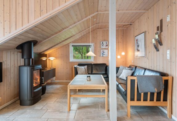 Das Wohnzimmer strahlt Gemütlichkeit aus und ist mit einem Kaminofen mit Glastür ausgestattet, der an kühlen Tagen für behagliche Wärme sorgt. Für Unterhaltung stehen Sat-TV, DVD-Player, Radio und kostenloses WLAN zur Verfügung. Eine energiesparende Wärmepumpe sorgt zusätzlich für ein angenehmes Raumklima.