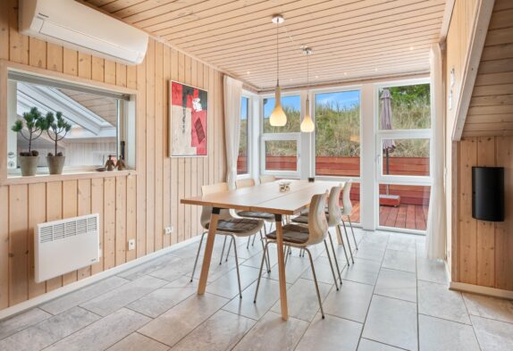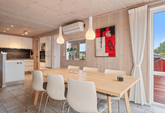 Dieses charmante, gemütliche und gepflegte Ferienhaus wurde im Jahr 2013 renoviert und präsentiert sich seitdem in einem modernen, freundlichen Stil. Die geschmackvolle Einrichtung sorgt für eine besonders einladende Atmosphäre, in der man sich sofort wohlfühlt. Der helle, lichtdurchflutete Essbereich lädt zu gemeinsamen Mahlzeiten ein und bietet einen wunderschönen Ausblick auf die umliegende Natur. Die Terrasse bietet viel Platz zum Entspannen in der Sonne. Das Ferienhaus liegt auf einem ruhigen Naturgrundstück in unmittelbarer Nähe zum bekannten Leuchtturm Nr. Lyngvig Fyr – ideal für alle, die Erholung und Natur genießen möchten.