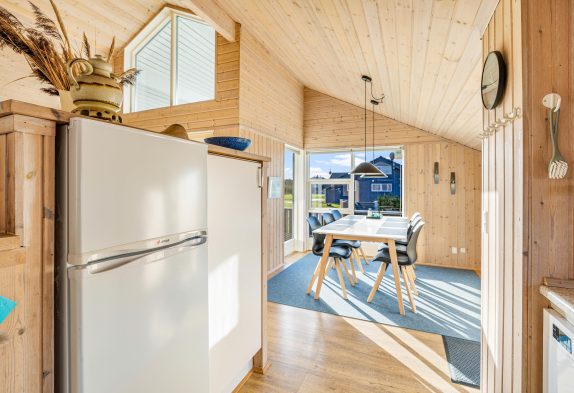 Genießt den großzügigen Wohnbereich, der mit einem einladenden Holzofen ausgestattet ist. Hier könnt ihr es euch an kühleren Abenden so richtig gemütlich machen. Das Ferienhaus bietet Platz für bis zu sechs Personen, ideal für Familien oder Freunde, die gemeinsam unvergessliche Erinnerungen sammeln möchten. Nutzt die voll ausgestattete Küche mit Geschirrspüler, um eure Lieblingsgerichte ohne großen Aufwand zuzubereiten. Die energiesparende Wärmepumpe sorgt im Wohnbereich für ein konstantes und angenehmes Raumklima.