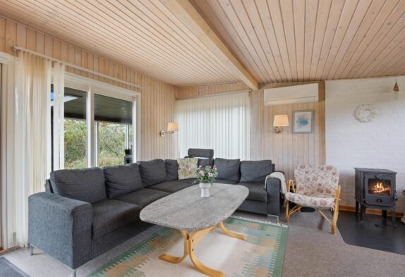 Im Zentrum des Ferienhauses erwartet euch die schöne und praktisch eingerichtete Küche, welche mit Geschirrspüler und Mikrowelle ausgestattet ist. Im gemütlich eingerichteten Wohnzimmer findet ihr bequeme Möbel und einem Kamin vor. Beim prasselnden und wärmenden Kaminfeuer könnt ihr hier über Chromecast eure eigenen Serien und Filme streamen – ideal für einen gemütlichen Regentag im Ferienhaus.