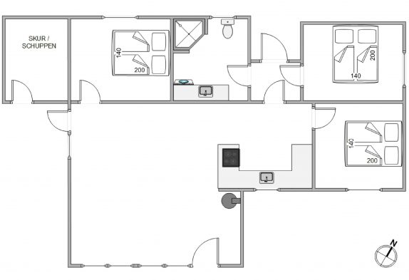 Dieses schicke Ferienhaus hat 3 Schlafzimmer, alle mit Doppelbetten. Das Badezimmer ist mit Fußbodenheizung, schöner Dusche und Waschmaschine ausgestattet.