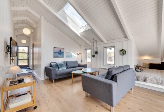 Die westgewendete Terrasse bietet sich insbesondere am Abend an, wenn die Sonne den Himmel in ein Meer der Farben verwandelt und wo ihr den Abend gemütlich ausklingen lassen könnt. Für die ideale Entspannung sorgt auf der Terrasse zudem eine Badetonne, welche euch einlädt, den wunderschönen Sternenhimmel über Bjerregård zu genießen und den Tag erholt und zufrieden zu beenden.