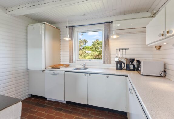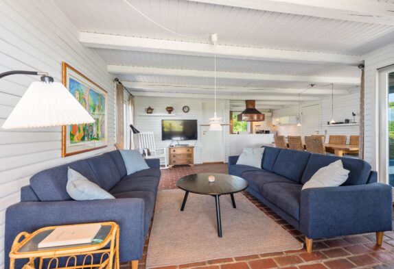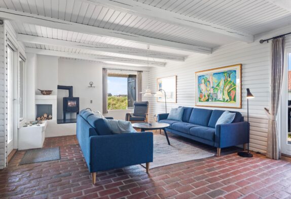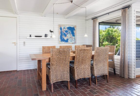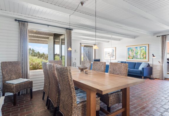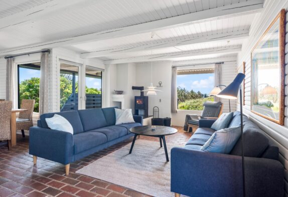 Im Julianevej 35 erwartet euch ein charmantes Ferienhaus in Bjerregård, mit idealer Lage nah am Strand und den Dünen der dänischen Westküste. Das Ferienhaus aus dem Jahre 1980 ist gemütlich eingerichtet, hat weiße Holzwände und rustikale Fliesenböden. Von dem Wohnbereich gelangst du auf die schöne und überdachte Terrasse.