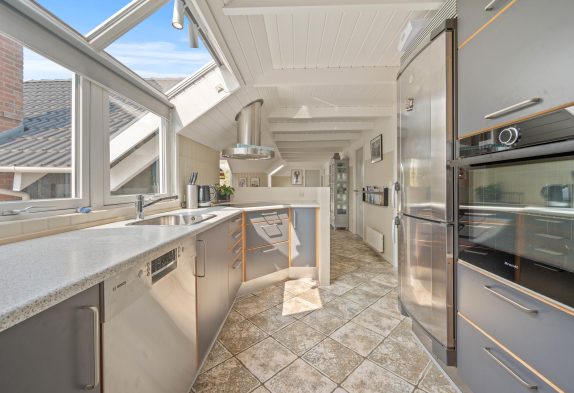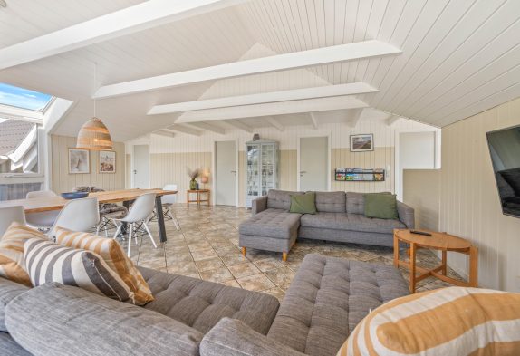 Ein schönes Ferienhaus im Hvidbjergvej 113, das auf einem Naturgrundstück in Søndervig liegt. Von hier sind es nur 250 Meter bis zur Nordsee. Es gibt eine geschlossene Terrasse nach Süden und Osten, auf der man sich fast den ganzen Tag aufhalten kann. Das Haus liegt an der äußersten Dünenreihe und ist sehr gepflegt.