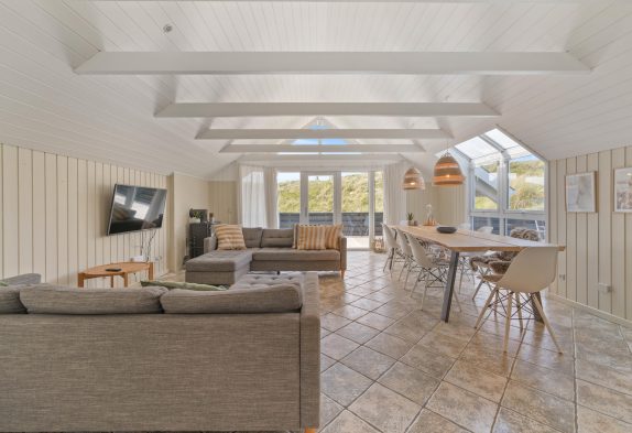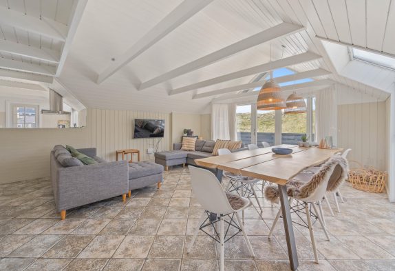 In der Küche und dem schönen Wohnbereich gibt es hohe Decken und Klinkerfliesen mit Fußbodenheizung. In der Küche ist ein 165 Liter Gefrierschrank, Mikrowelle und ein Geschirrspüler vorhanden. Der Wohnbereich ist gemütlich und geschmackvoll eingerichtet mit einem Flachbildschirm-TV, Kamin, Radio und einem kostenlosen Internetzugang.