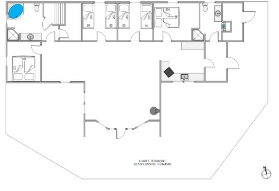 Dieses Ferienhaus wurde 2004 gebaut und hat Platz für 8 Personen verteilt auf 4 Schlafräumen. 2 Schlafzimmer haben jeweils ein Doppelbett und in den anderen 2 Schlafzimmern stehen jeweils 2 Einzelbetten, in allen Zimmern wurde Holzboden verlegt. Im Haus gibt es 2 Badezimmer mit Fliesen, Duschkabine und Fußbodenheizung.