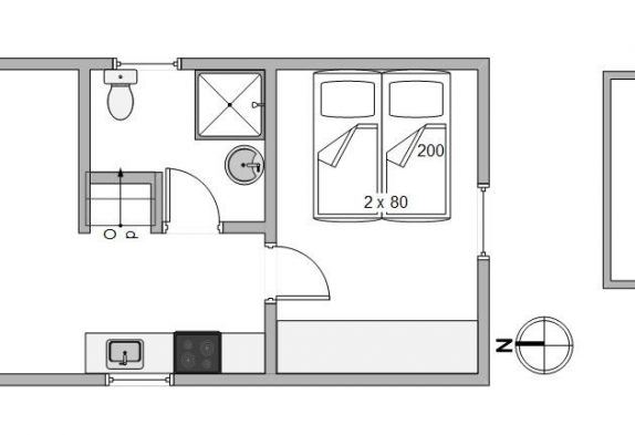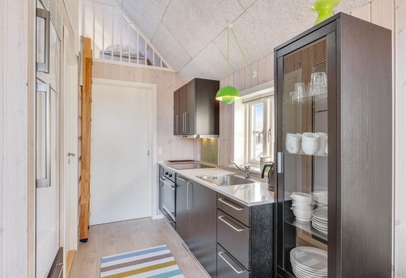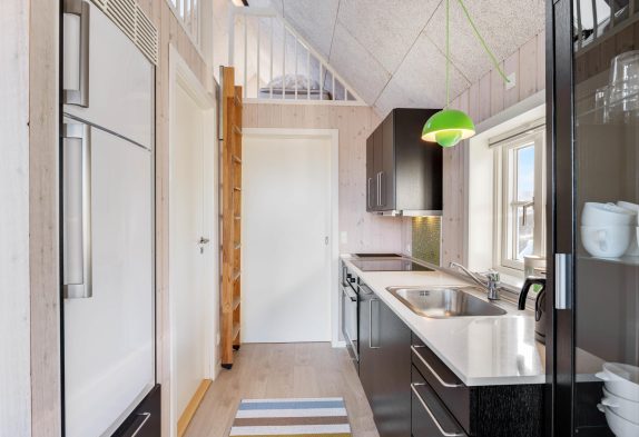 Hier ist Platz für 4 Personen. Die Hütte besteht aus einem schönen Schlafzimmer mit Doppelbett und Schränken, schickem Badezimmer mit Dusche und einer gemütlichen Wohnküche. Die Küche ist mit allen Bequemlichkeiten eingerichtet, z.B. Induktionskochplatten und Geschirrspüler.