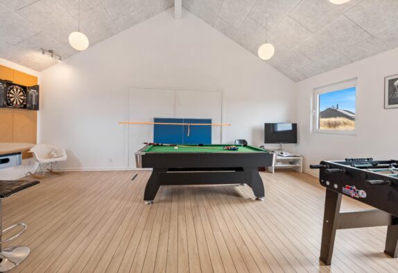 Sollte es doch mal etwas regnerisch sein, gibt es auch super Möglichkeiten, euch im Haus zu beschäftigen und viele Stunden Spaß miteinander zu haben. Das Haus verfügt nämlich über einen Aktivitätsraum, wo ihr euch zum Beispiel gegenseitig beim Tischfußball herausfordern könnt. Oder wie wäre es mit einer gemütlichen Runde Billard? Einen Flachbildschirm gibt es hier auch, wo du die mitgebrachte Spielkonsole für die Kinder anschliessen kannst.