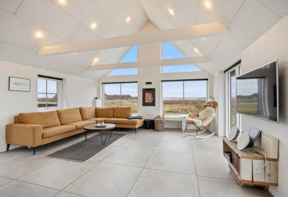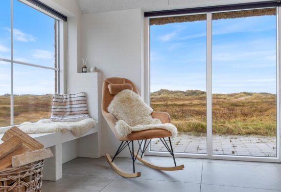 Vom Haus aus hast du einfach eine fantastische Aussicht auf die Natur und die Dünen. Sogar den Leuchtturm ?Lyngvig Fyr? kannst du vom Haus aus gut beobachten. Die schöne und gutgelegene Südterrasse ist geschlossen und somit ideal geeignet, wenn ihr den Familienhund mitbringt. Hier kann er sich frei auf der Terrasse aufhalten, während du auf der Sonnenliege mit einem guten Buch die Sonnenstrahlen und die umliegende Natur genießt. Auch am Strand bist du schnell zu Fuß, und lange schöne Spaziergänge bieten sich hier natürlich an.