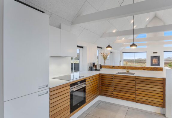 Die Eigentümer dieses tollen Reetdachhauses haben bei dem Bauen und Einrichten, ganz besonders auf die Qualität geachtet – nur das Beste war hier gut genug. Die gut ausgestattete und offene Küche ist mit dem Wohnraum verbunden und hier kannst du euch abends schön den Kamin anmachen ? das Feuer sorgt für eine richtig gemütliche Stimmung.
